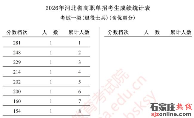 2026年河北省高職單招一類一分一檔表 來源:石家莊熱線 2026-04-10 15:35:30 閱讀() 評論() 2026年河北省高職單招一類一分一檔表… 2026年河北省高職單招一類一分一檔表退役士兵 河北單招更多信息請到河北單招網(wǎng)(www.hebdzw.com)進行查詢。 河北單招 河北單招一分一檔 贊
