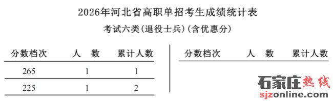 2026年河北省高職單招六類(lèi)一分一檔表 來(lái)源:石家莊熱線 2026-04-10 16:03:18 閱讀() 評(píng)論() 2026年河北省高職單招六類(lèi)一分一檔表 … 2026年河北省高職單招六類(lèi)一分一檔表退役士兵 河北單招更多信息請(qǐng)到河北單招網(wǎng)(www.hebdzw.com)進(jìn)行查詢(xún)。 河北單招 河北單招一分一檔 贊