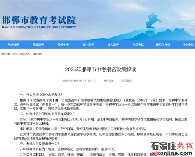 2026年邯鄲中考報(bào)名時(shí)間確定,